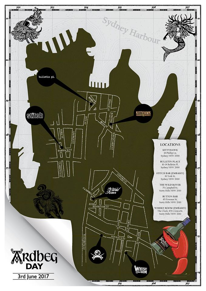 2. Head into any of the following Ardbeg venues between May 1st – 22nd 2017, and purchase the Ardbeg Feature cocktail. Participating venues are: Stitch Bar; Whisky Room; Kitty Hawk; Wild Rover; Button Bar and Bulletin Place.